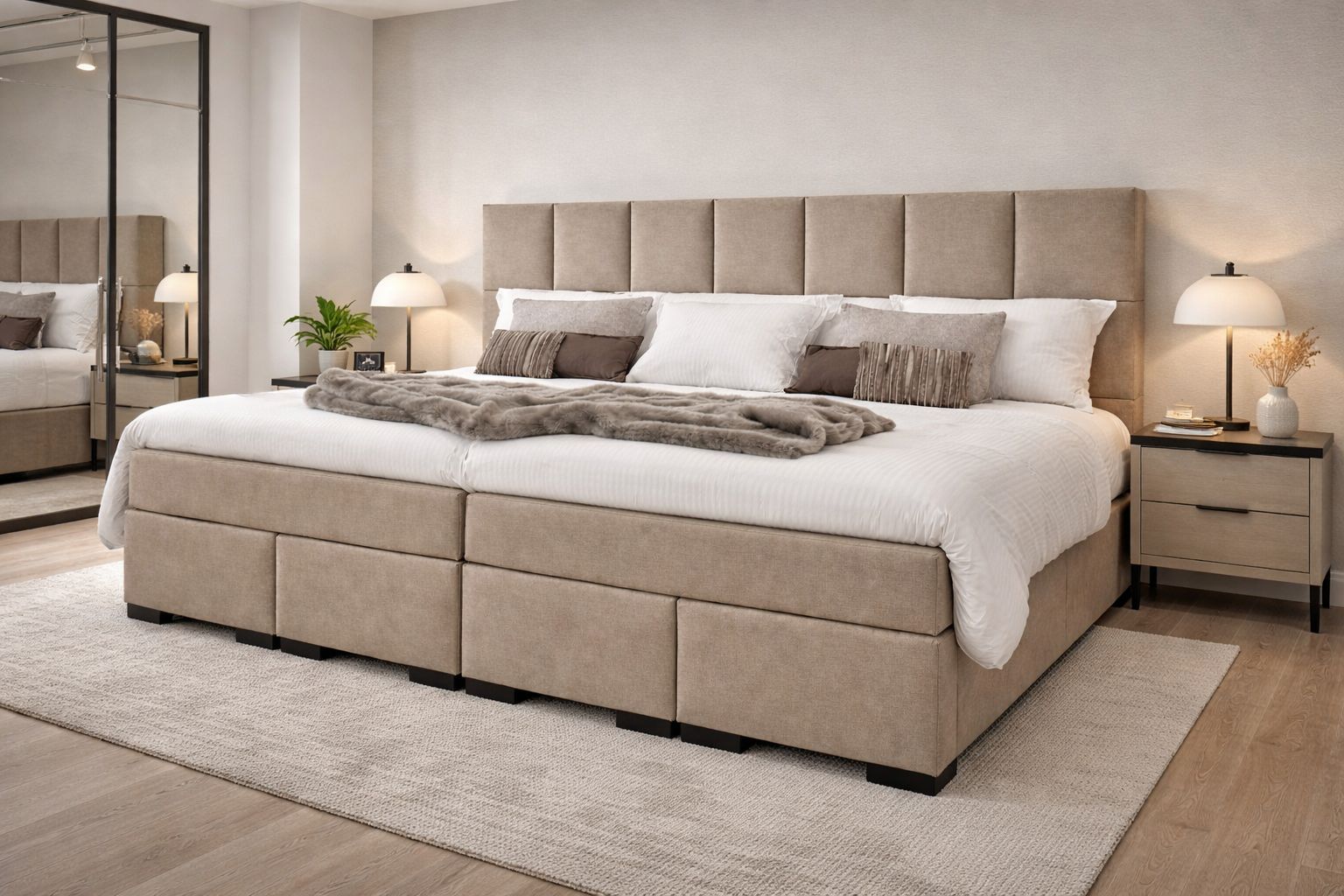 Ontwerp jouw boxspring met luxe stoffen, XXL-hoofdborden en geïntegreerde verlichting