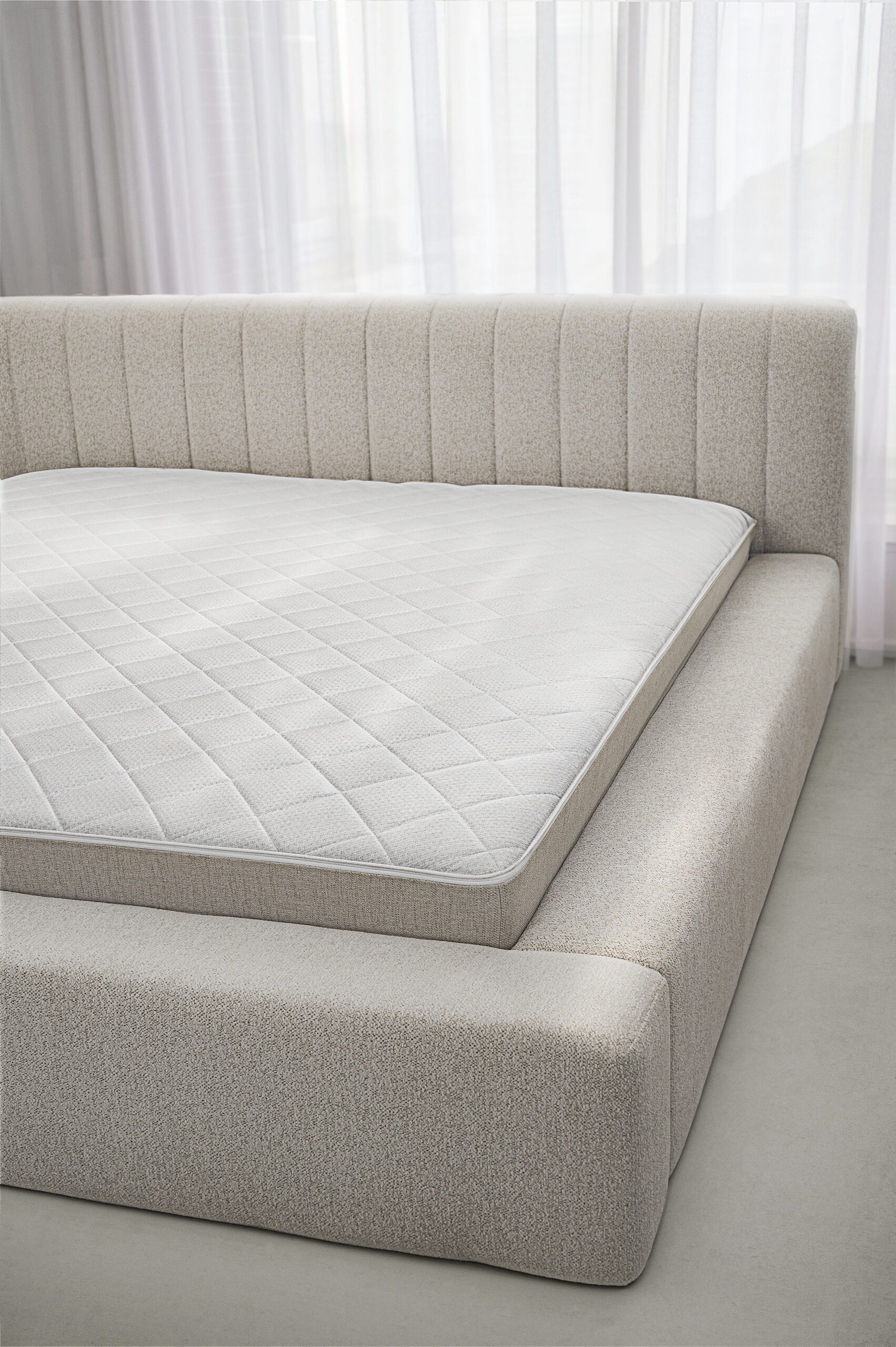 Geef uw slaapkamer een upgrade met ons lage tweepersoons bedframe van ADORE. Dit bedframe is een perfecte combinatie van stijl en functionaliteit. Dankzij zijn tijdloze design en hoogwaardige afwerking biedt dit bedframe de ideale basis voor een goede nachtrust. De neutrale beige kleur en het strakke hoofdbord met luxe naad voegen een vleugje elegantie toe aan elke slaapkamer.