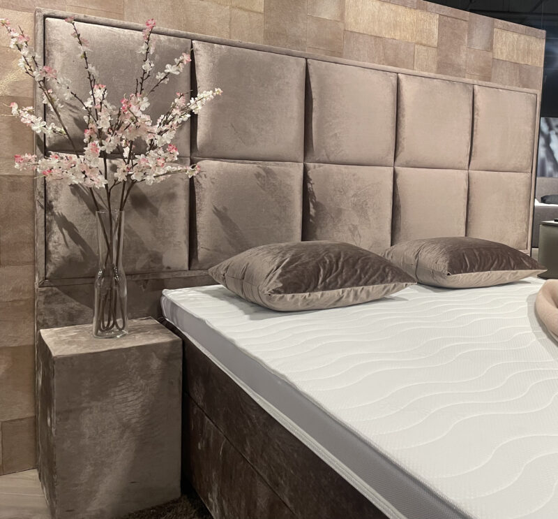 Het geblokte hoofdbord geeft deze boxspring een Chique en luxe uitstraling!