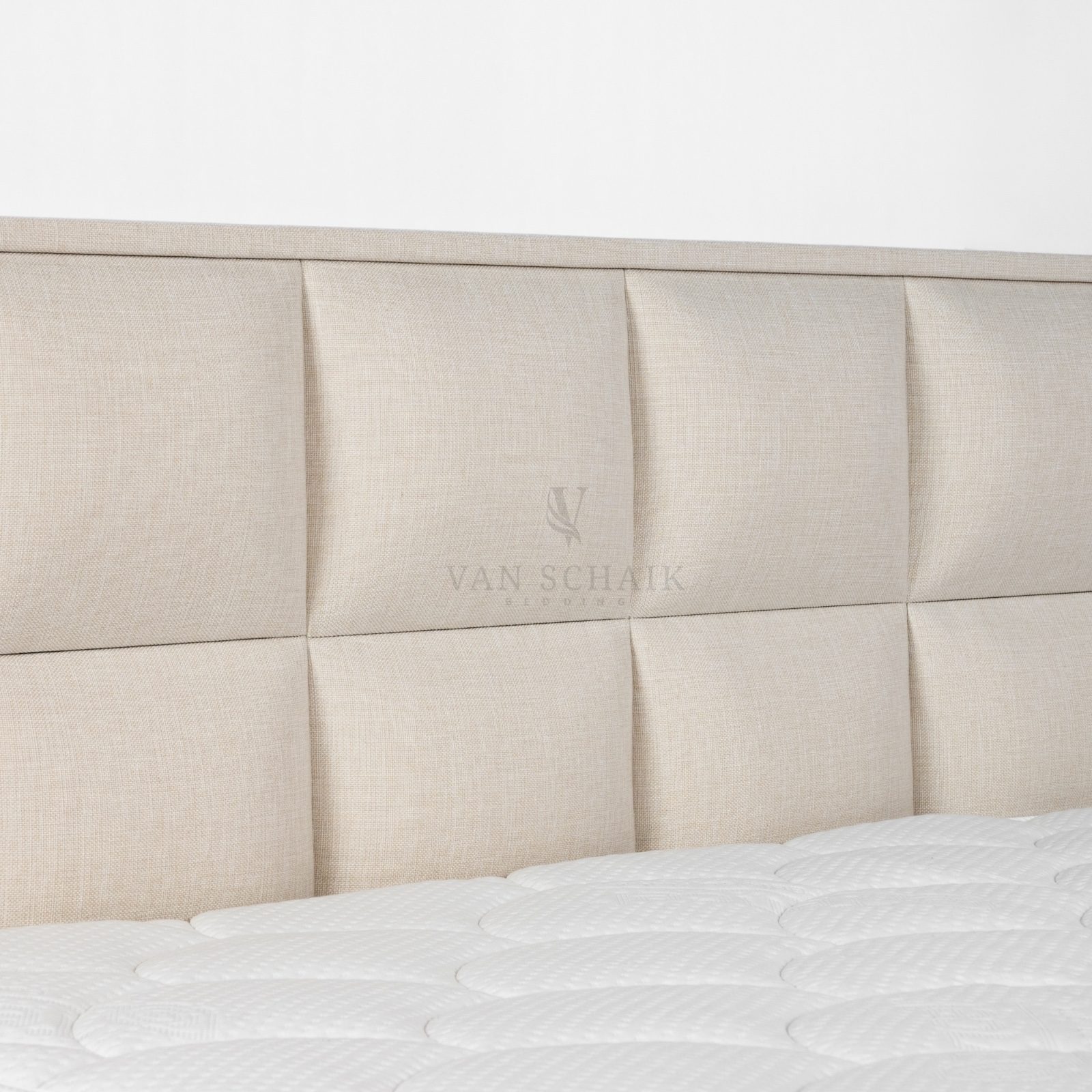 – 1x Hoofdbord met vierkante blokken, bekleed met luxe meubelstof