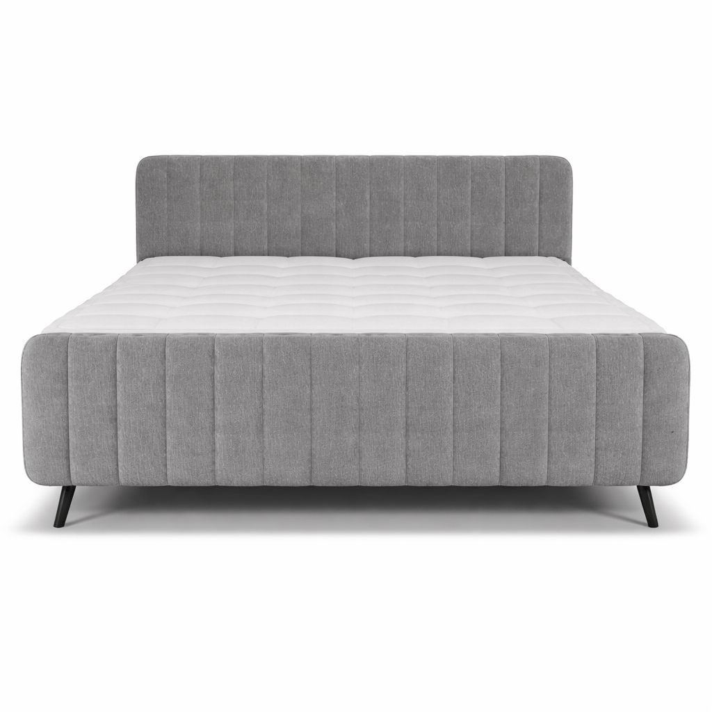 Elegant Design: Voorzien van een gestoffeerd hoofdbord én voetbord met een strak banenpatroon.