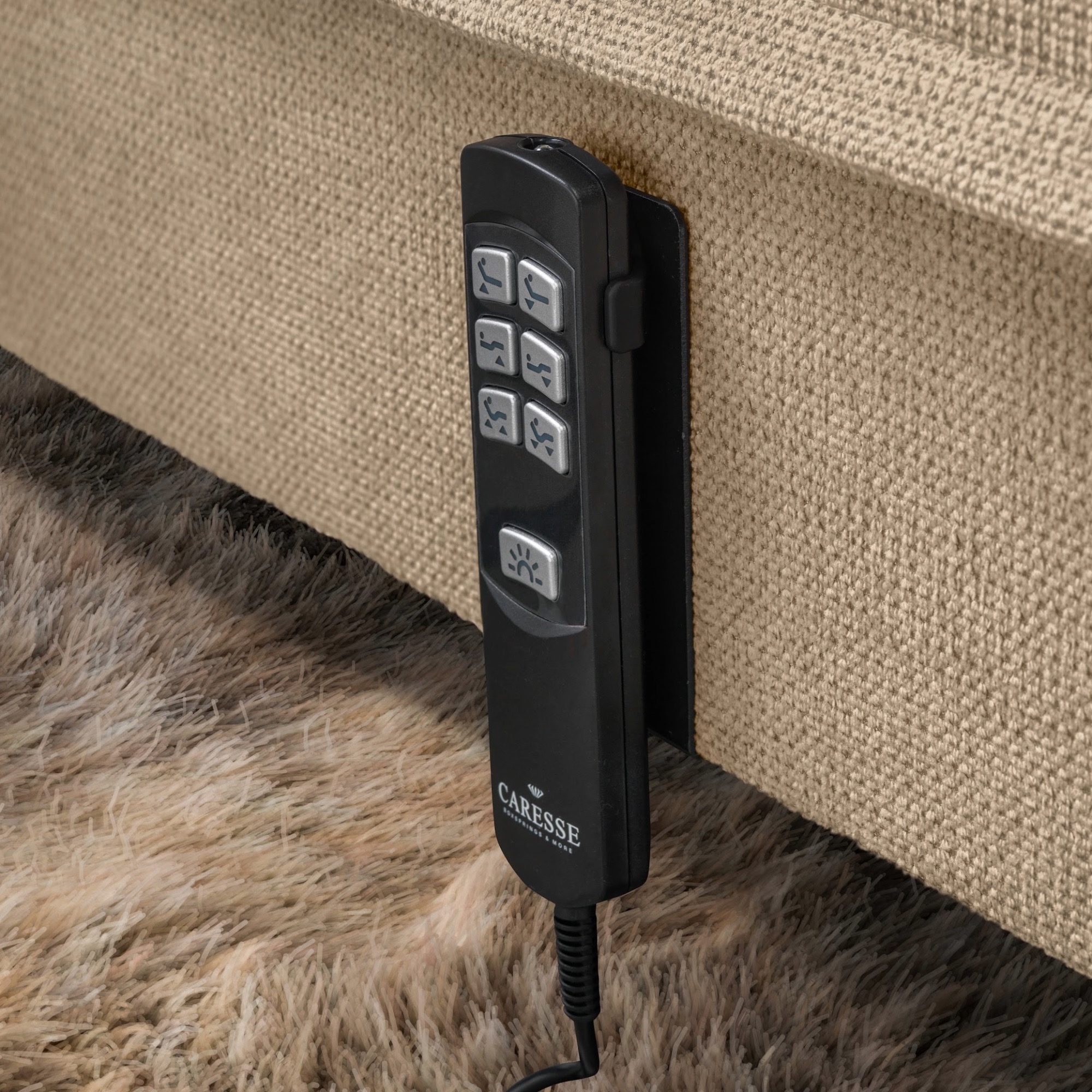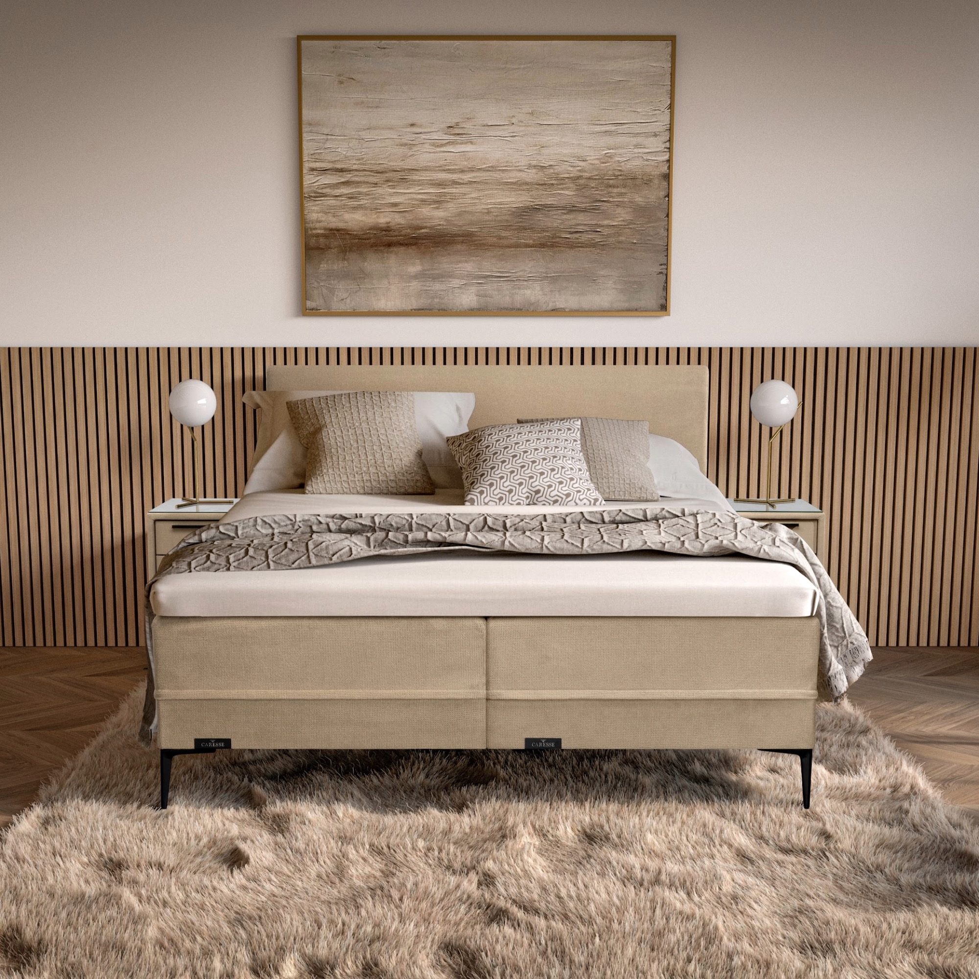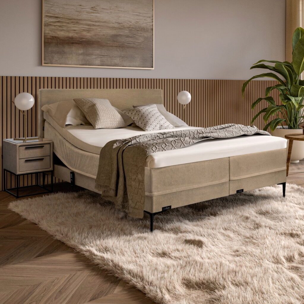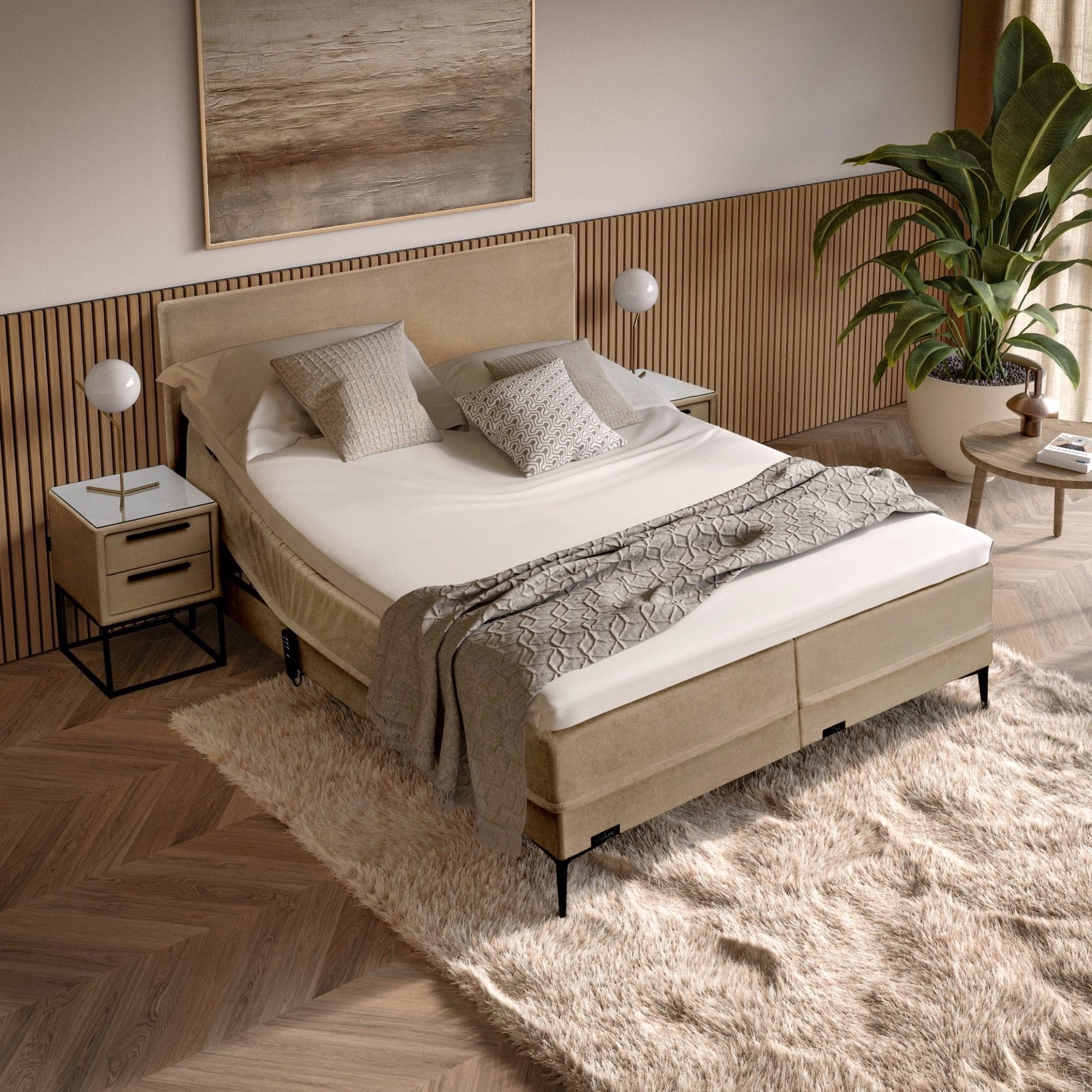 Geniet optimaal van het heerlijk comfort en het tijdloze uiterlijk van de Caresse boxspring 4100. Moderne kleuren en stoffen, vakmanschap en oog voor detail. Elektrisch verstelbaar d.m.v 2 dubbel aangedreven motoren, 6000 newton en voorzien van kabelbediening, pocketveren matrassen met zeven comfortzones, inclusief hoogwaardige Comfortschuim topper. Een hoogwaardige afwerking en uitgevoerd met een strak hoofdbord maken deze luxe boxspring een bed waar je jaren van geniet.