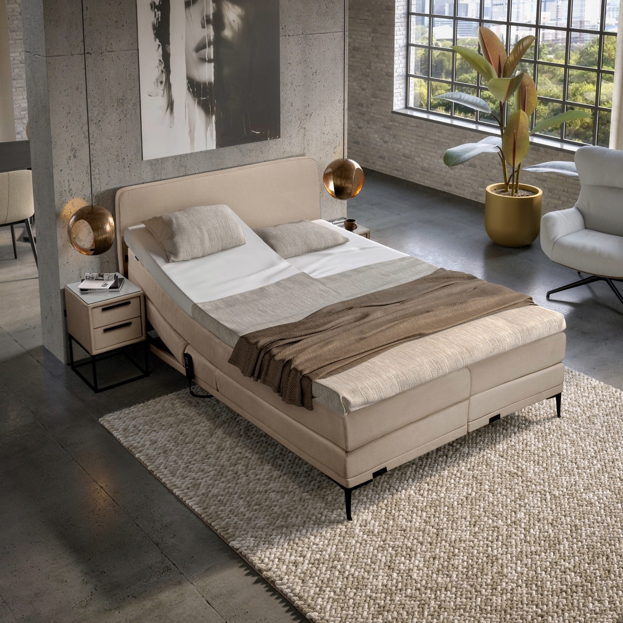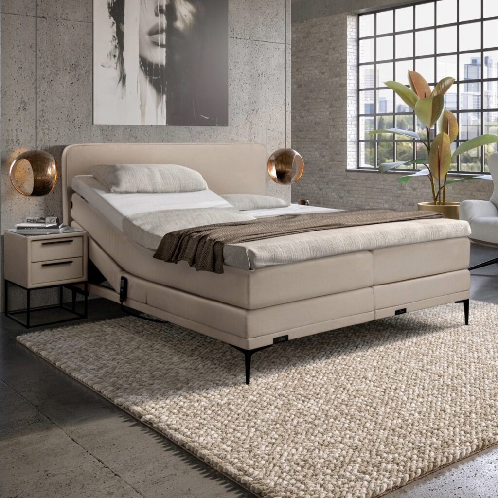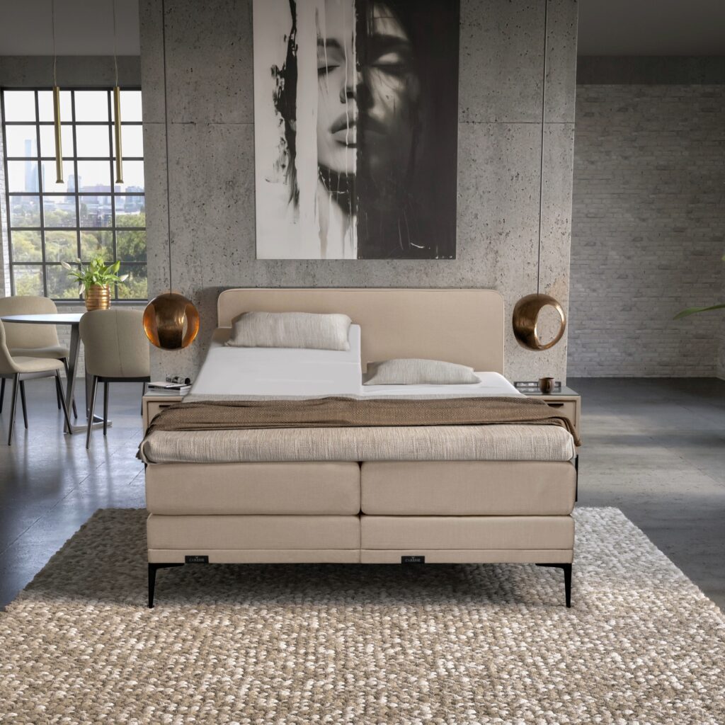 Optimaal genieten van het superieur comfort en het aantrekkelijk ontwerp van de Caresse boxspring 4200. Tijdloze kleuren en stoffen, vakmanschap en strak afgewerkt. Elektrisch verstelbaar d.m.v 2 dubbel aangedreven motoren, 6000 newton en voorzien van kabelbediening, pocketveren matrassen met zeven comfortzones, inclusief hoogwaardige Comfortschuim topper. Uitgevoerd met een strak hoofdbord biedt deze boxspring je de volmaakte afsluiting van je dag en geeft glans aan vele nachten.