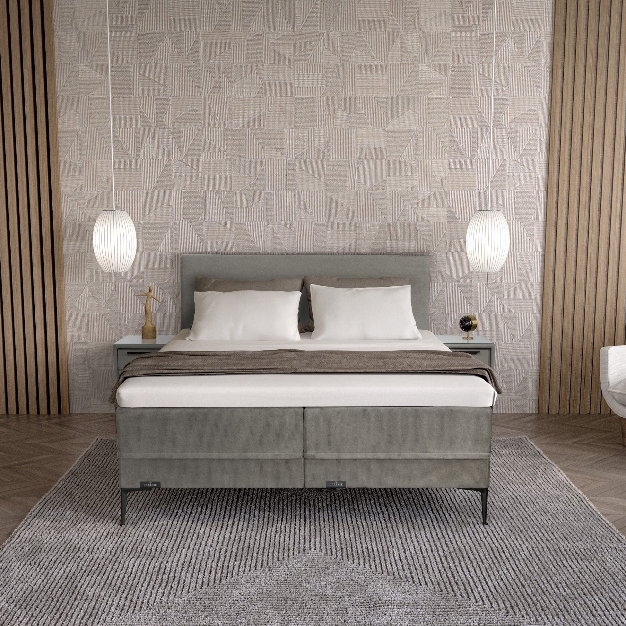 Geniet optimaal van het heerlijk comfort en het tijdloze uiterlijk van de Caresse boxspring 4150. Moderne kleuren en stoffen, vakmanschap en oog voor detail. Een vlakke boxspring met pocketveren matrassen, zeven comfortzones, inclusief hoogwaardige Comfortschuim topper. Een hoogwaardige afwerking en uitgevoerd met een strak hoofdbord maken deze luxe boxspring een bed waar je jaren van geniet.