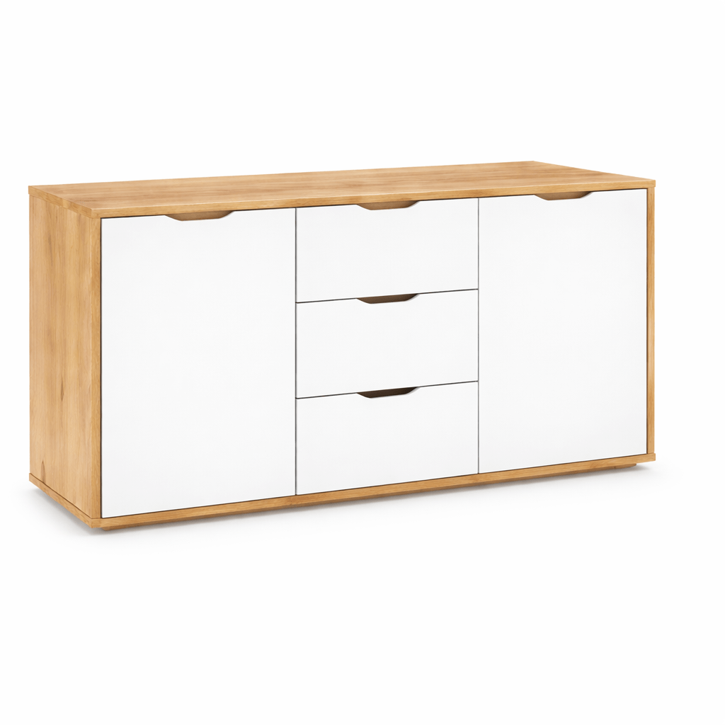Dankzij het robuuste ontwerp vormt de Alabama Commode III een solide fundament in uw interieur. Daarnaast heeft u de keuze uit drie verschillende fronten: Wildeiken, Grijs of Wit. Omdat de commode met uiterste precisie is afgewerkt, sluiten de deuren en laden bovendien geruisloos. Tevens zorgt de massieve constructie voor een stabiel en trillingsvrij meubelstuk. Kortom, u kiest met dit model voor een harmonieuze combinatie van Scandinavisch design en superieure Duitse kwaliteit.