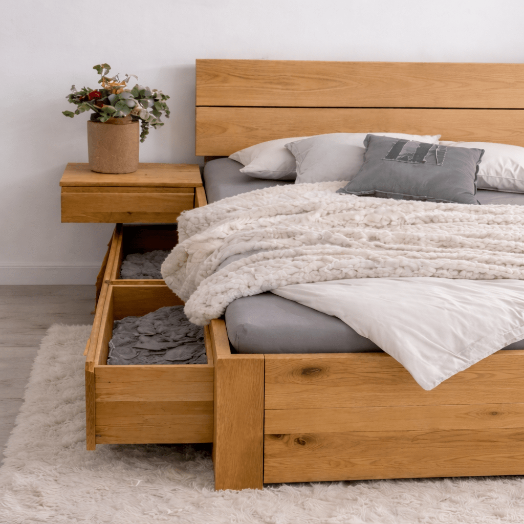 Slimme Organisatie: Houd uw slaapvertrek eenvoudig stofvrij en netjes dankzij de ruime, verrijdbare lade-units.