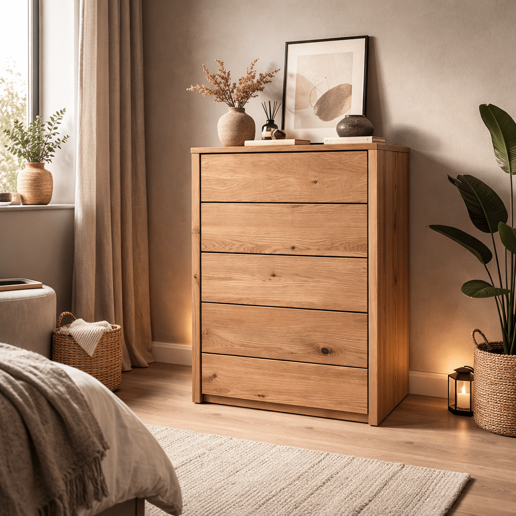 Solide Bouw: Een zwaar, massief houten meubel dat staat als een huis.
