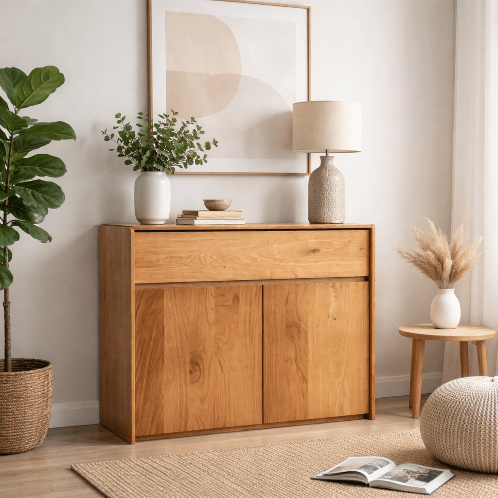 Natuurlijk Geolied: De afwerking met natuurlijke olie beschermt het hout en laat de nerf prachtig spreken.