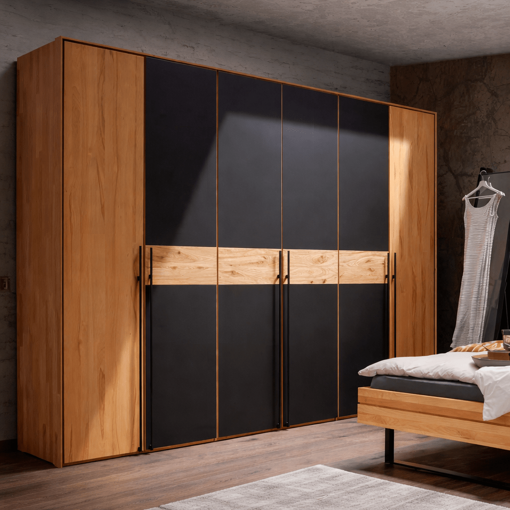 De Forestales Roxbury Kledingkast is een prachtig statement in elk modern interieur. Omdat deze kledingkast een stijlvolle combinatie van materialen biedt, is het bovendien een echte eyecatcher. De kast is namelijk vervaardigd uit hoogwaardig Europees massief wild eikenhout, gecombineerd met een front van mat antraciet glas in het midden. Hierdoor ontstaat er een uniek contrast tussen warme natuurlijke elementen en strakke, moderne accenten. Daarom is de Roxbury-serie perfect voor wie houdt van zowel natuurlijke luxe als een eigentijds design.
