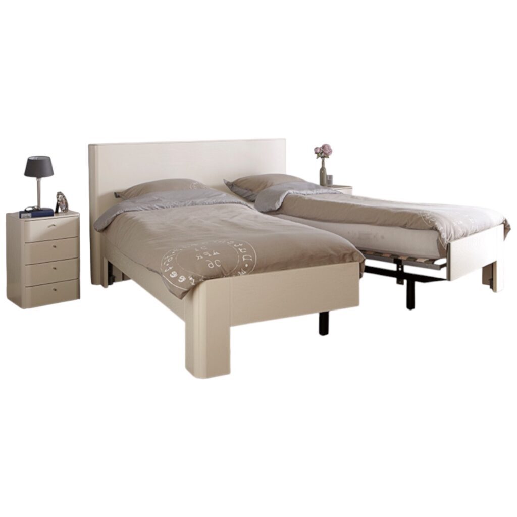 Het ledikant is voorzien van een slim koppelsysteem waarmee het bed in één eenvoudige beweging uit elkaar te schuiven is. Hierdoor kan het bed snel worden aangepast aan de gewenste situatie, zonder in te leveren op stabiliteit of comfort.