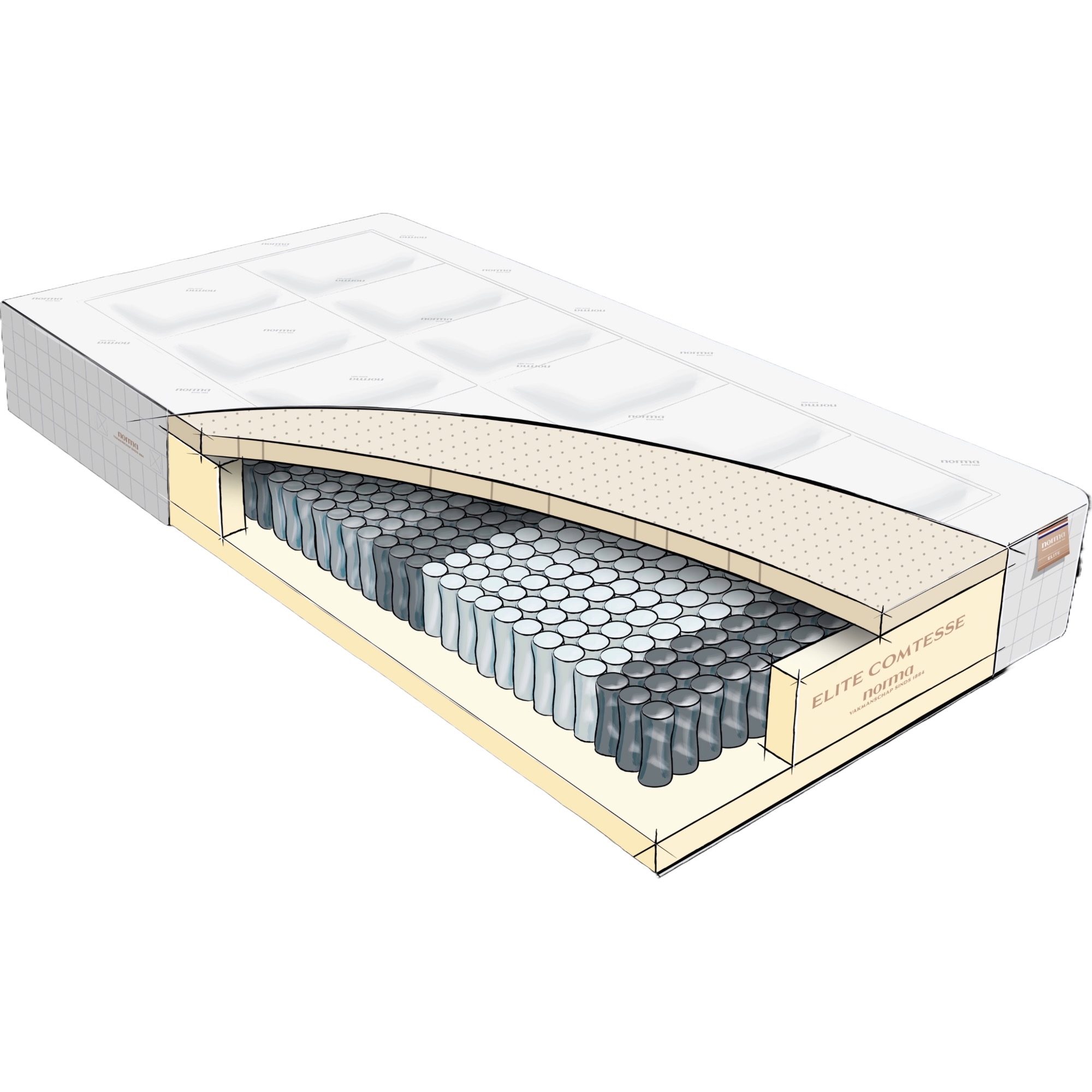 - 7-zone pocketverenkern met >700* veren, dubbel thermisch gehard