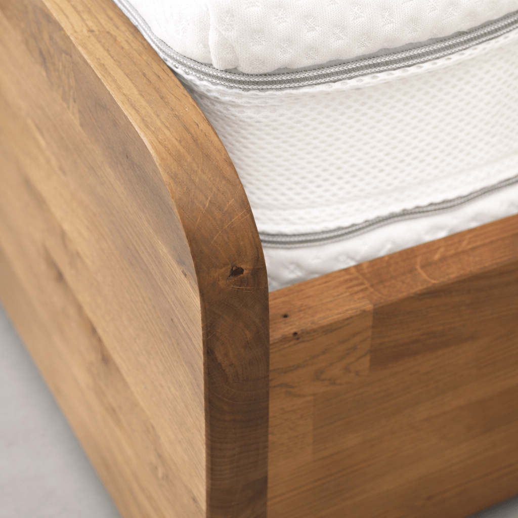 100% Massief Eiken: Een duurzaam natuurproduct dat garant staat voor een robuust en stevig bed.