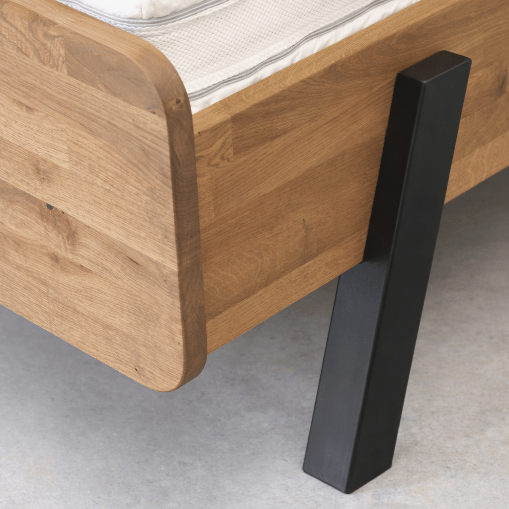 Bij het Szafir Bed staat keuzevrijheid centraal, zodat u de look volledig zelf kunt bepalen. U kunt namelijk kiezen uit stoere zwart metalen poten om het bed een industrieel accent te geven. Daarbij heeft u de keuze uit drie verschillende modellen: de poot 100, 200 of 300. Elke pootvariant heeft een eigen unieke vormgeving, waardoor u de hoogte en uitstraling naar wens aanpast. Daarom is de Szafir niet alleen een bed, maar een weerspiegeling van uw eigen stijl.