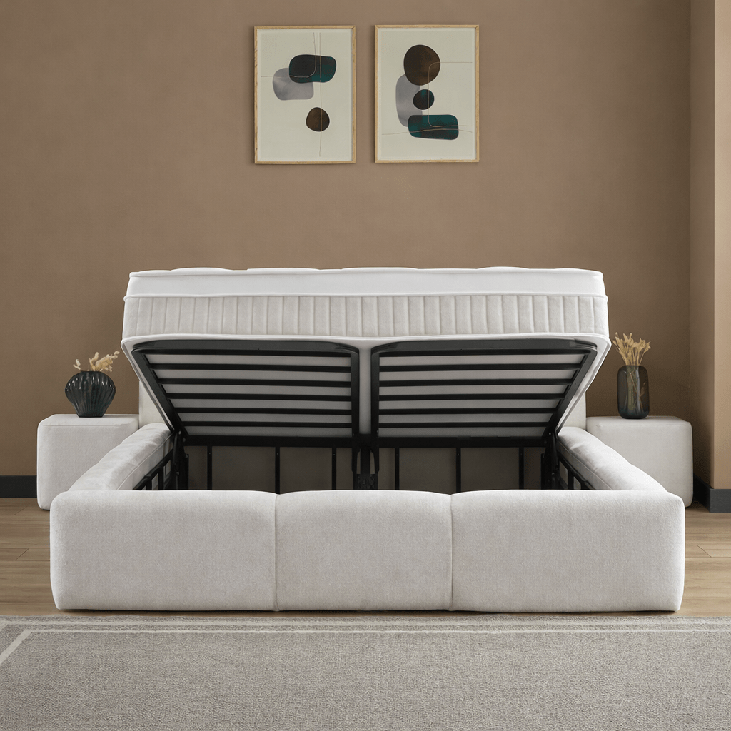 Onzichtbare Opbergbox: Ruime en praktische opslagplaats voor beddengoed en kussens.