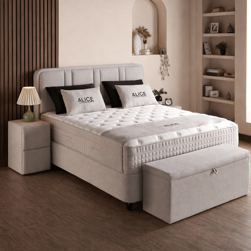 Met de bijpassende nachtkast en optionele voetbank ontstaat er een harmonieus geheel dat rust en orde in uw slaapkamer bevordert. Het Alice Bed Bouclé kopen betekent namelijk dat u kiest voor meer dan alleen een plek om te slapen; het nodigt u uit om te vertragen en te genieten van puur design. De geïntegreerde opbergruimte onder het matras is bovendien slim weggewerkt, waardoor u extra opslagcapaciteit heeft zonder het minimalistische ontwerp te verstoren. Vervolgens zorgen de handige pockets in de box ervoor dat uw persoonlijke eigendommen altijd georganiseerd blijven.
