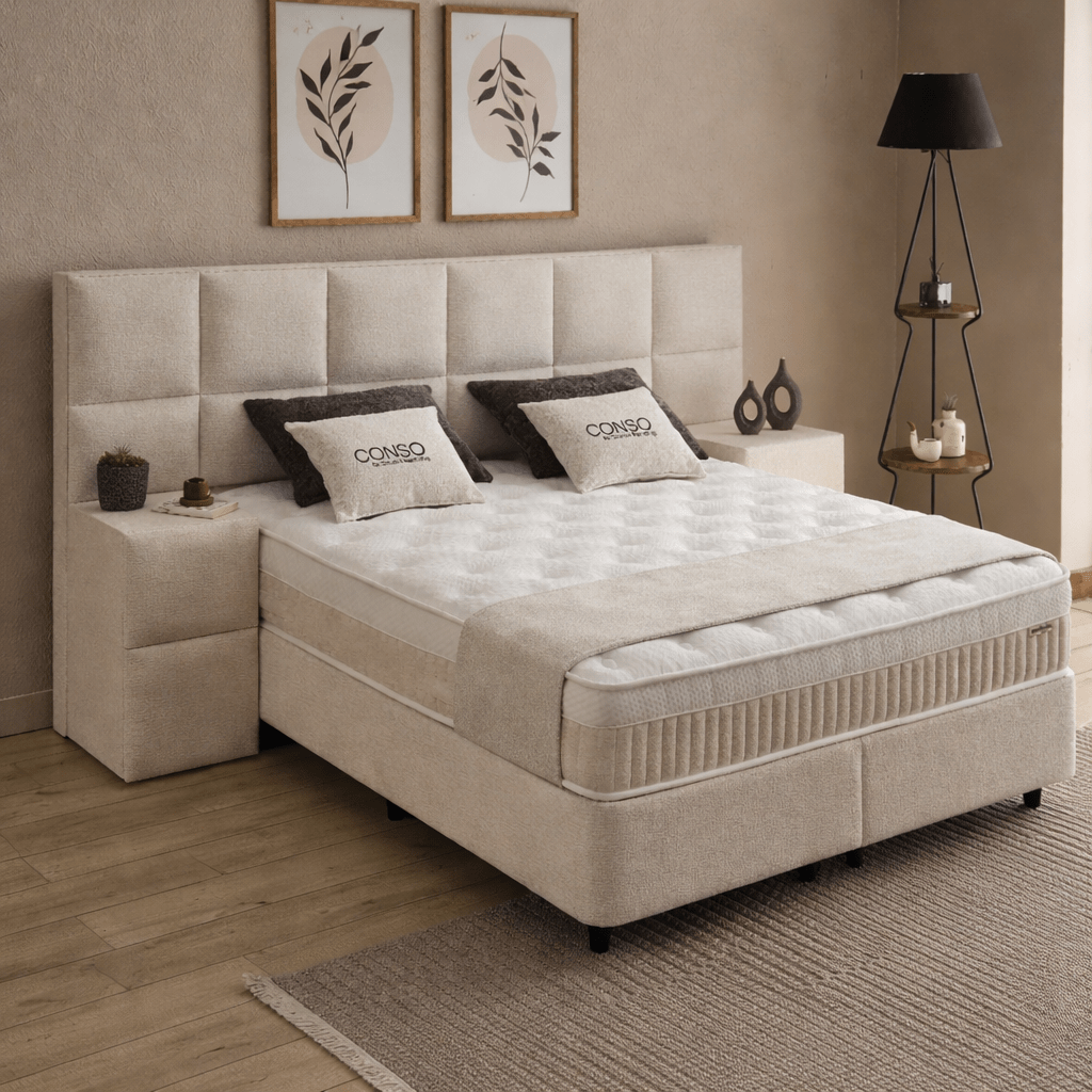 Bijpassende Nachtkastjes: Optioneel verkrijgbaar (45×45 cm) voor een visuele en stijlvolle eenheid.