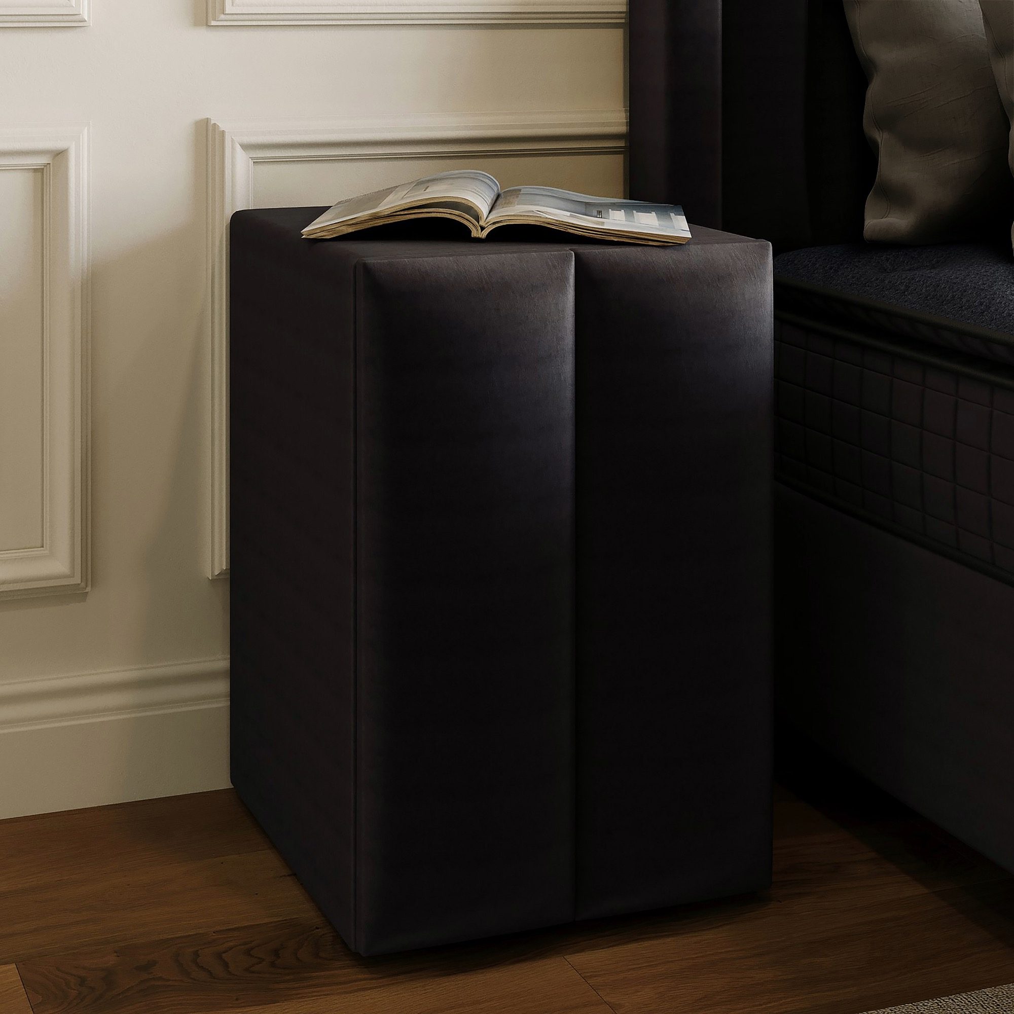 De Blackpearl Boxspring Met Opbergruimte Antraciet is een combinatie van stijl en comfort, speciaal ontworpen om elke slaapkamer te transformeren in een stijlvolle en rustgevende ruimte. Deze eenpersoons boxspring is bekleed met een hoogwaardige velvet stof, die een luxueuze uitstraling biedt en een zacht, uitnodigend gevoel creëert. Het verfijnde hoofdbord, met een indrukwekkende hoogte van 132 cm en een dikte van 10-11 cm, geeft het bed een statige en elegante uitstraling. Dit hoofdbord, dat in 2 delen geleverd wordt, draagt bij aan de visuele allure van het bed en maakt het tot een prachtige blikvanger in uw slaapkamer.