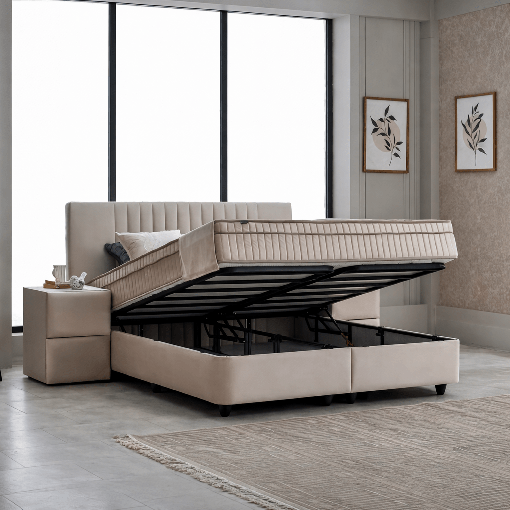 Opbergboxspring Clara Beige: Moderne Elegantie en Slimme Opslag