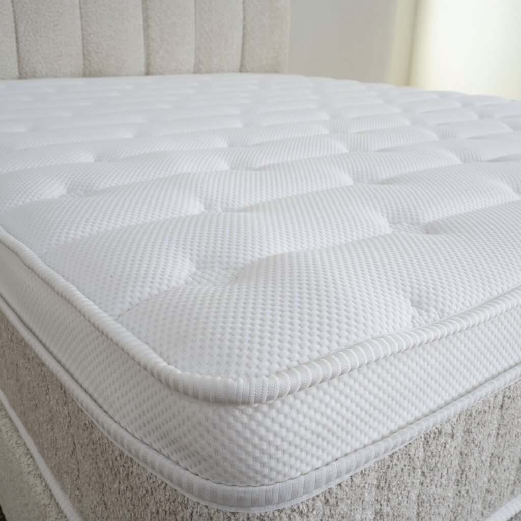 Het matras van de Gradia is opgebouwd uit zes hoogwaardige lagen, waaronder een kern van 13 cm pocketvering met 500 veren per m². De zeven comfortzones bieden doelgerichte ondersteuning voor schouders, heupen en onderrug. Aan beide zijden is het matras voorzien van HR50 koudschuim en afgewerkt met een geïntegreerde topper van 6 cm, die extra comfort biedt zonder te verschuiven. Dankzij de antislipbodem en matrasremmers blijft alles netjes op zijn plek.
