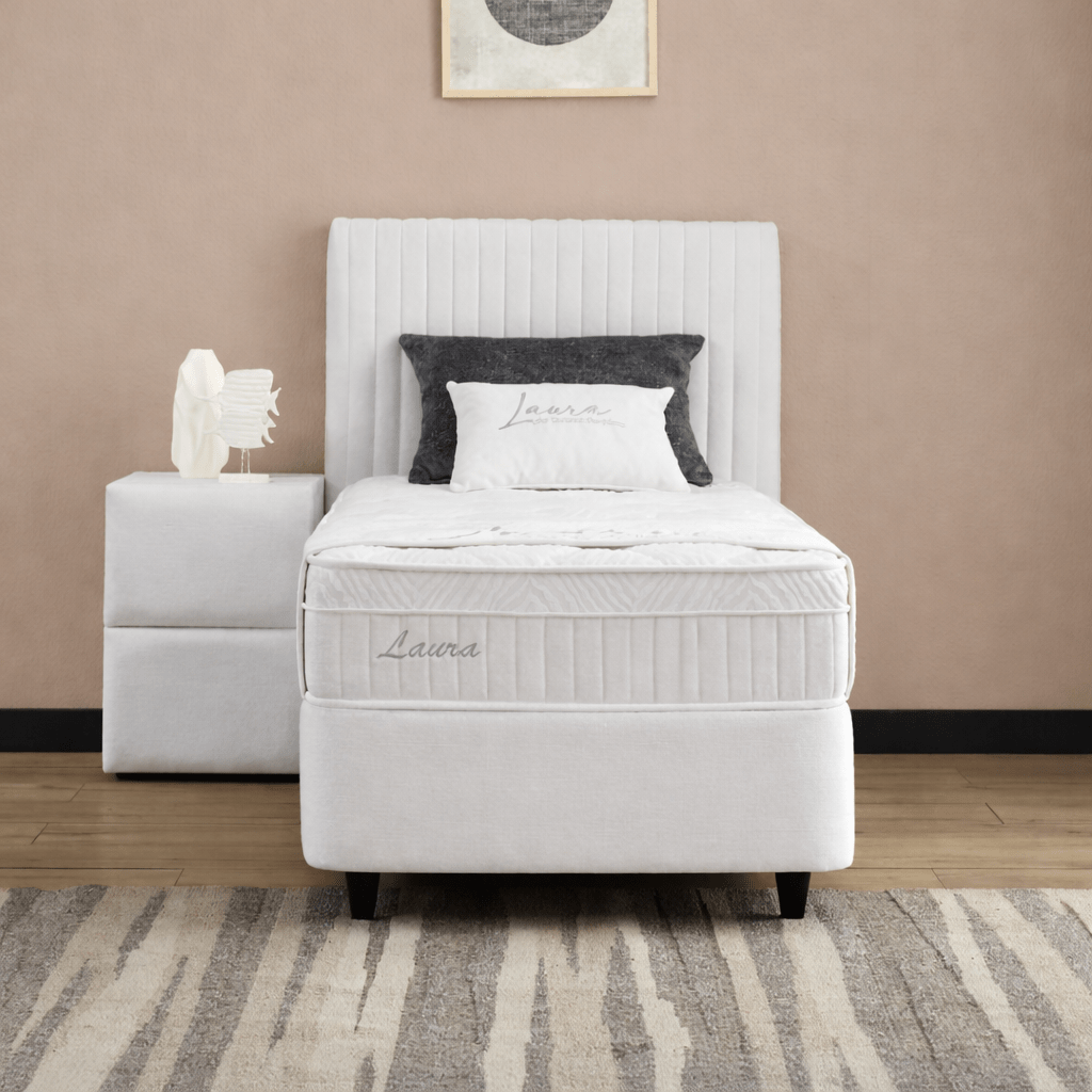 De Opbergboxspring Laura 1-persoons is de perfecte keuze voor wie op zoek is naar een moderne en praktische slaapoplossing met een hotelwaardige uitstraling. Het luxe hoofdbord is voorzien van een verfijnde afwerking en een zachte stoffering, wat direct zorgt voor een chique en eigentijdse sfeer in uw slaapkamer. Dankzij het zorgvuldig gekozen design met de kenmerkende ‘oren’ aan het hoofdbord, krijgt uw interieur een levendige en exclusieve aanblik die rust en klasse uitstraalt.