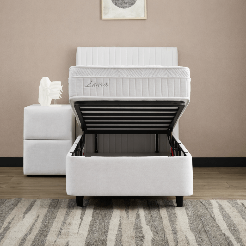 Slimme Opbergruimte: Volledige toegang tot de ruimte onder het matras voor maximale opslagcapaciteit.