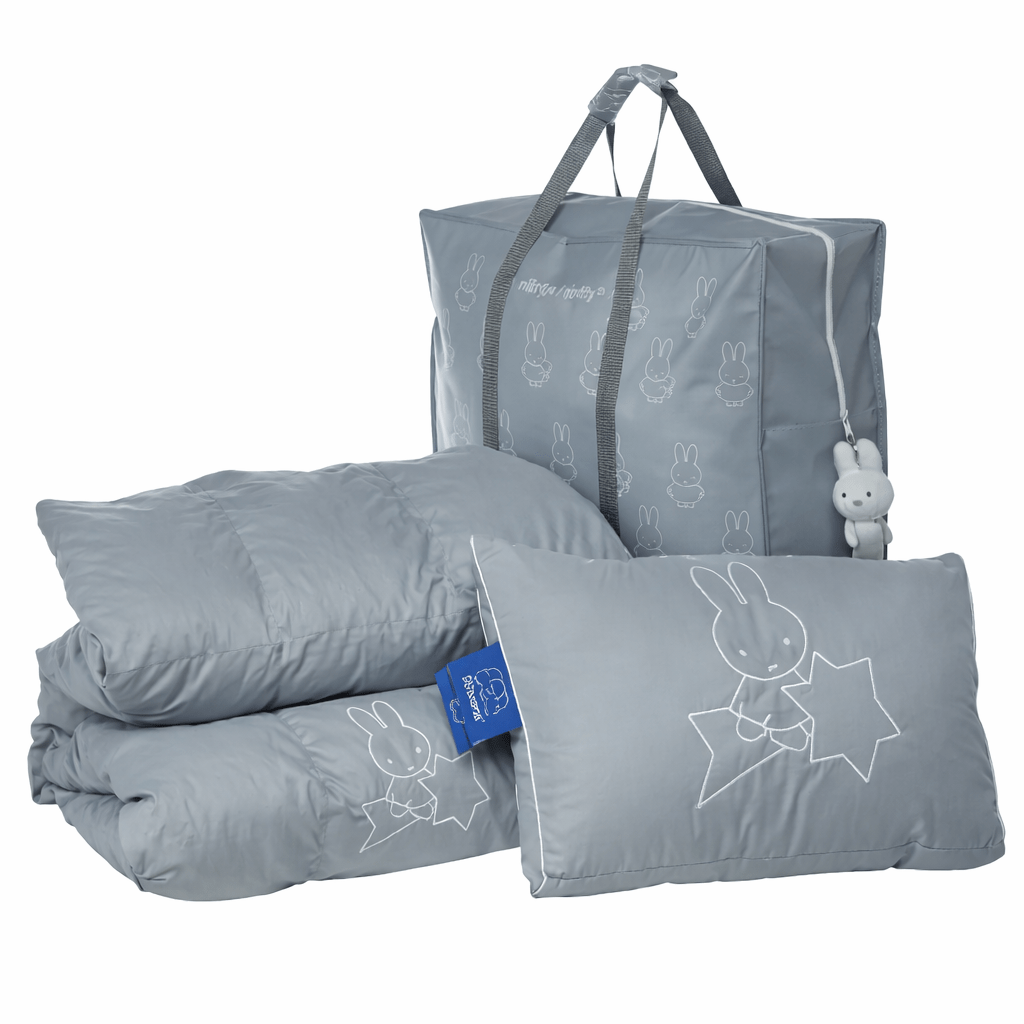 Bovendien is de Silvana nijntje slaapset uitgevoerd in een stijlvolle grijze kleur met een luxe witte bies en een prachtig nijntje borduursel. Daarnaast is het ontwerp uiterst praktisch; een dekbedovertrek is namelijk niet nodig. Hierdoor bespaart u tijd en moeite, terwijl uw kind geniet van de zachte materialen direct op de huid.