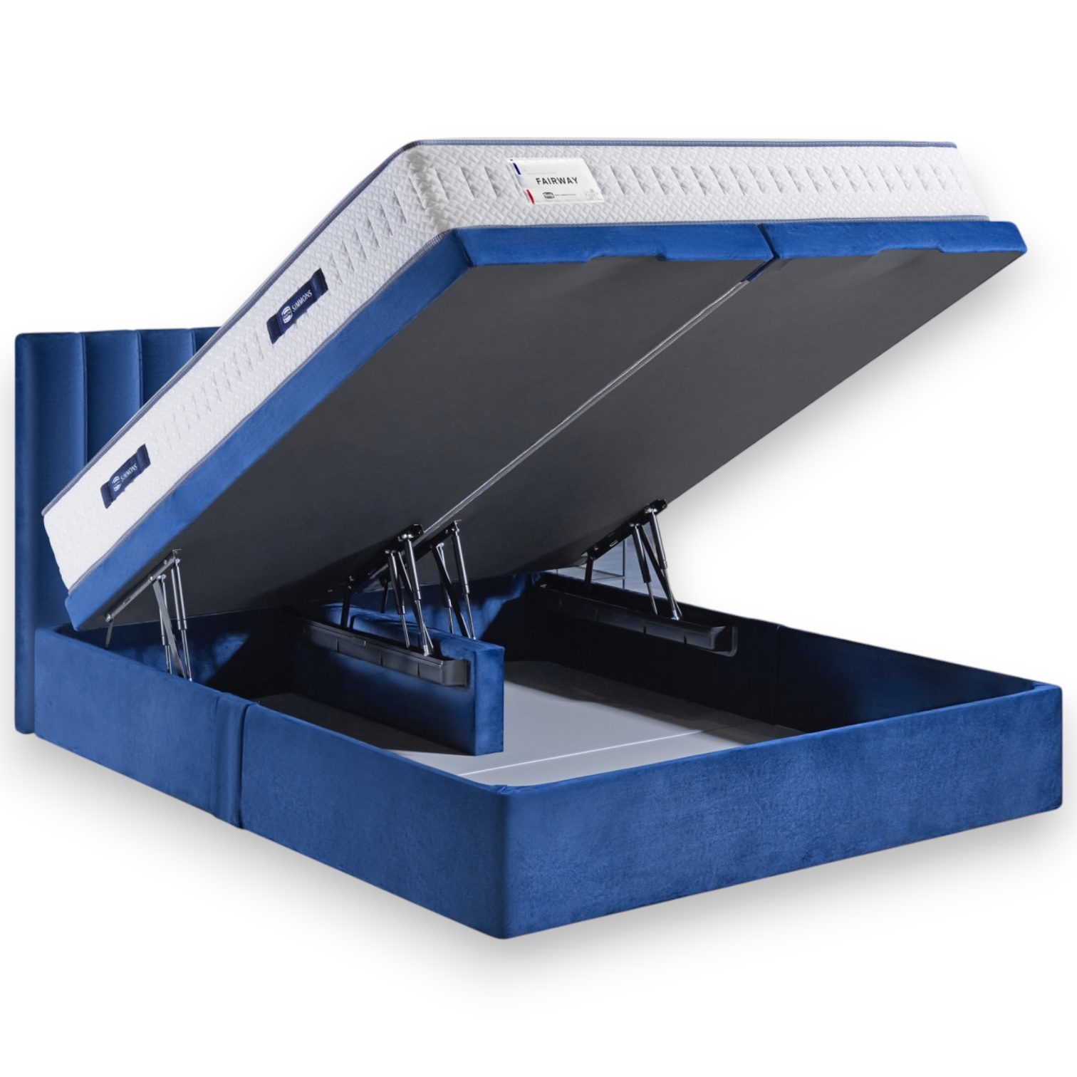 De elektrische opbergruimte opent soepel dankzij een geavanceerd motorsysteem met hefkompassen, gasveren en elektromotoren. Dit zorgt voor moeiteloze bediening, zelfs met een zware matras.