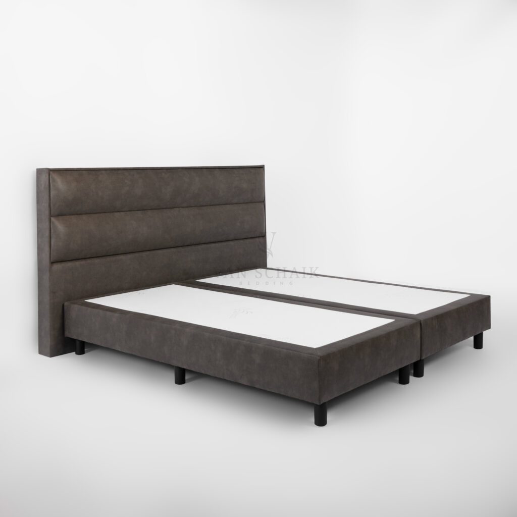 De Boxspring Kiev wordt geleverd met harde hotelboxen van 20 cm dik, geschikt tot 160 kg per persoon. Deze vormen een solide, stabiele basis voor ieder type matras. De boxen rusten op 12 cm hoge zwarte poten, wat zorgt voor een comfortabele instaphoogte én een moderne, luchtige uitstraling.