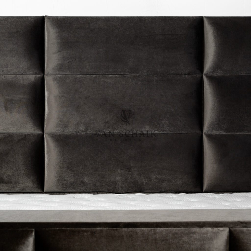 Het 175 cm hoge hoofdbord is een echte blikvanger en verlengt visueel je ruimte. Het is 90 cm breder dan de boxspring zelf, wat zorgt voor een imposant en evenwichtig silhouet. De stoffering is strak, naadloos en elegant afgewerkt – typisch Van Schaik: vakmanschap zonder poespas, maar met maximale uitstraling.