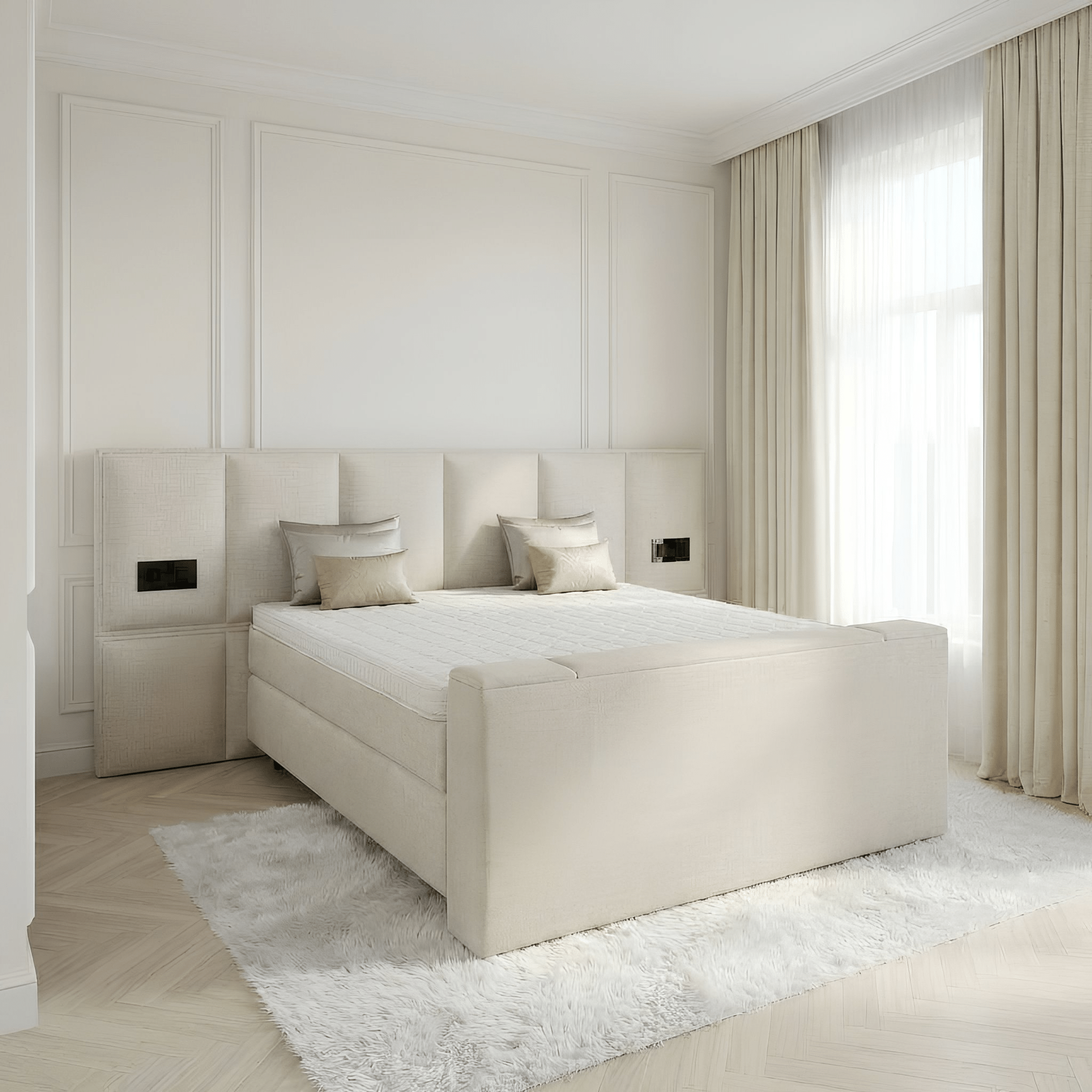 Bij Dreambedden ontwerpt u de Boxspring Royal Seraphine volledig naar uw eigen smaak en specifieke slaapbehoeften. U kiest namelijk zelf het gewenste ligcomfort met een medium of stevig matras en selecteert daarnaast een luxe topper. Bovendien bepaalt u de kleur, het type boxen en de potenset om het geheel te perfectioneren. Omdat de mogelijkheden eindeloos zijn, ontstaat er altijd een uniek bed dat perfect in uw woning past. Daarom biedt dit model de ideale balans tussen persoonlijke ergonomie en design: