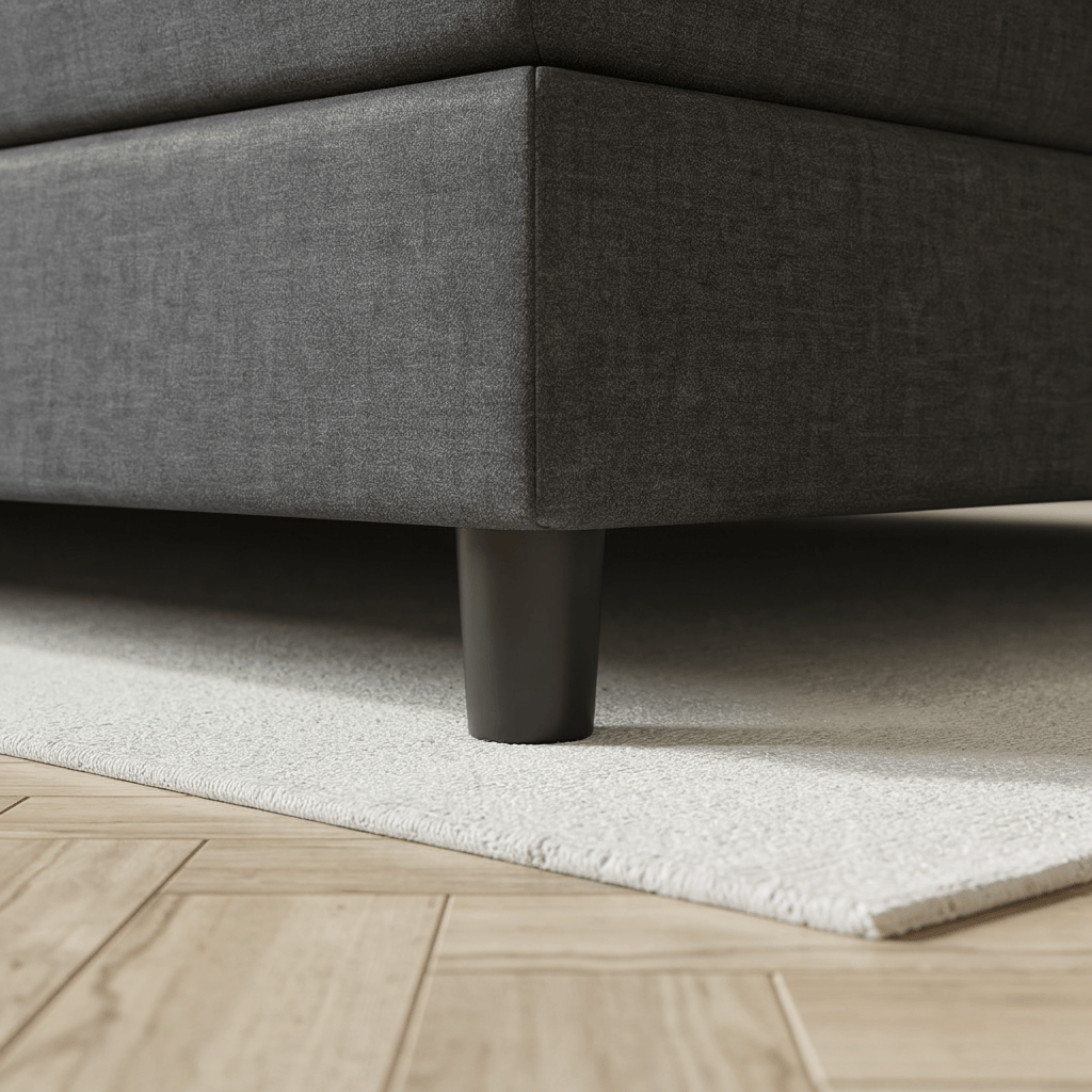 De boxspring staat op stijlvolle zwarte poten van 12 cm hoog. Dit zorgt niet alleen voor een moderne uitstraling, maar ook voor een prettige instaphoogte en extra ventilatie onder het bed.