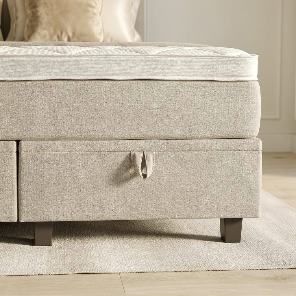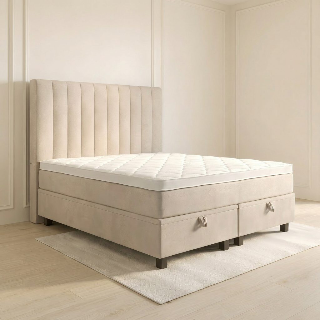 Stijlvol Geheel: De matrashoezen zijn volledig meegestoffeerd in dezelfde kleur als de boxspring.